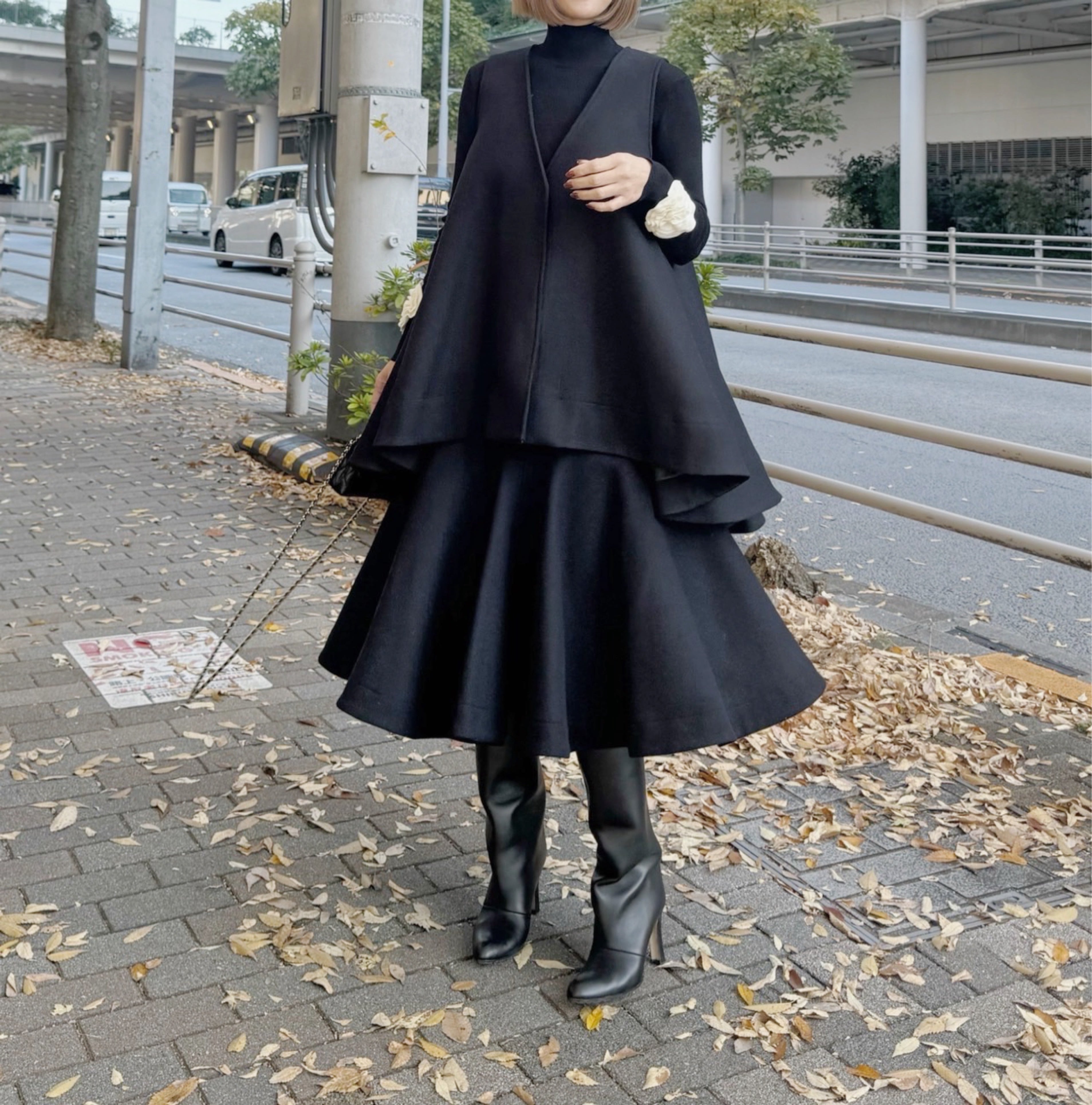Aラインの広がりが上品でボリューム感のあるメルトン素材のフレアベスト