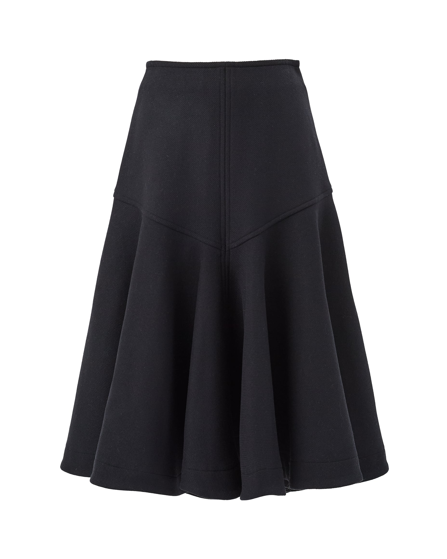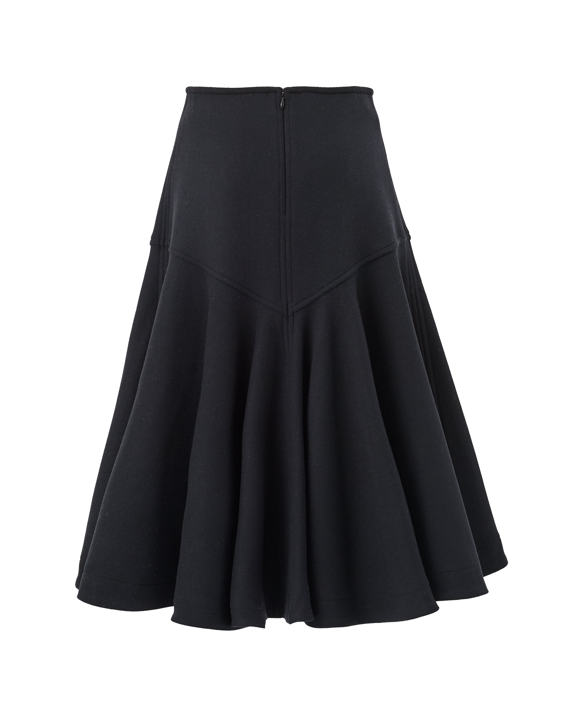 エレガンスとモダンさを兼ね備えた、上質なメルトン素材で仕立てたフレアスカート。