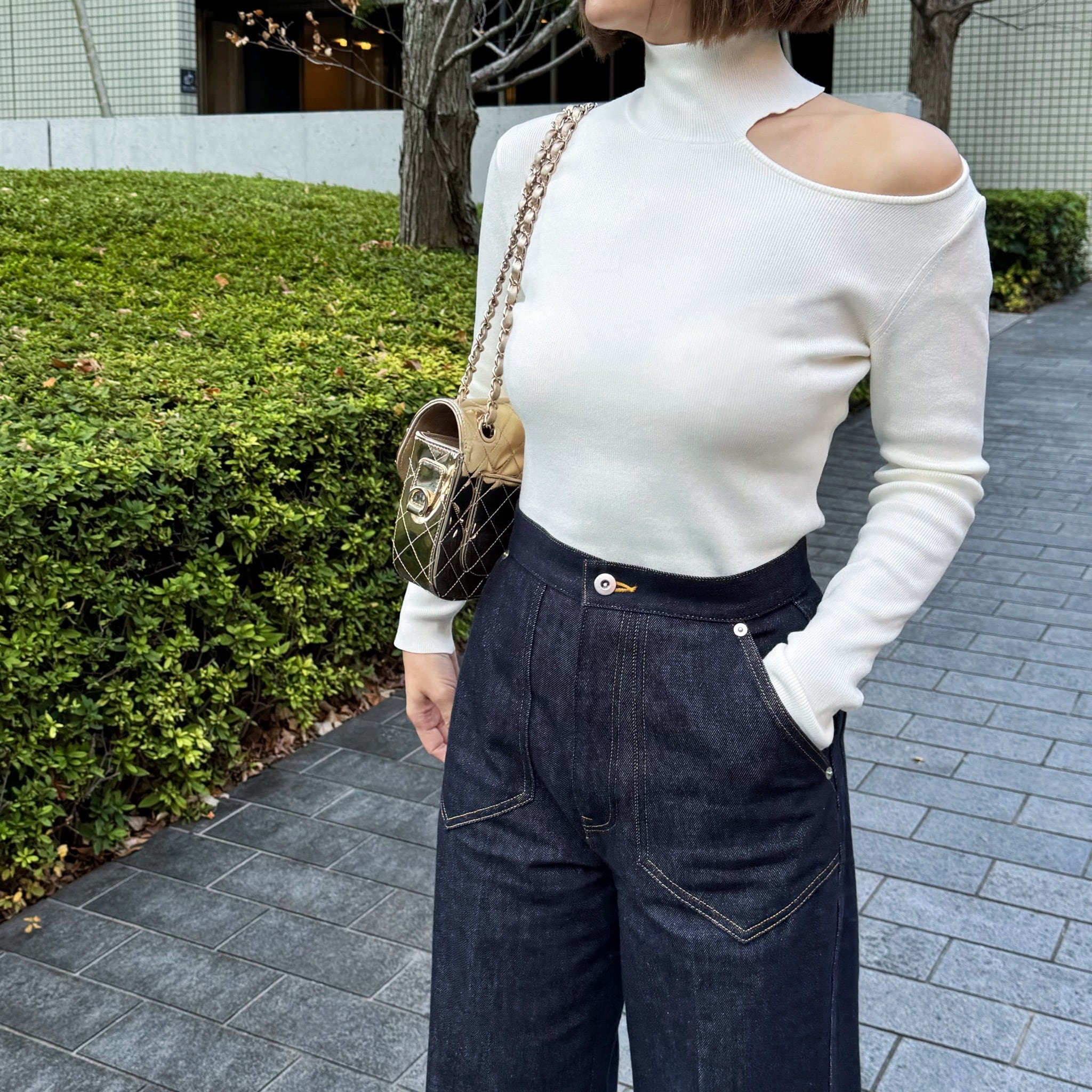 肩空きのニットタートル。