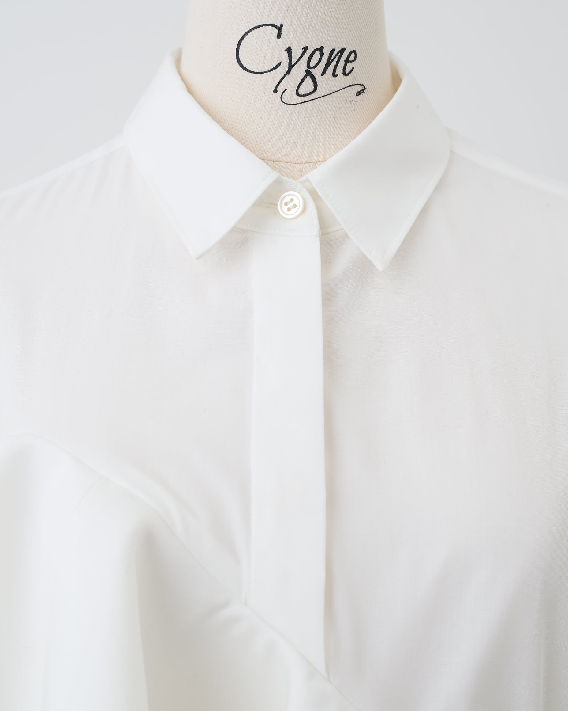 アシンメトリーなフリルが美しく揺れる、軽やかなブラウス。